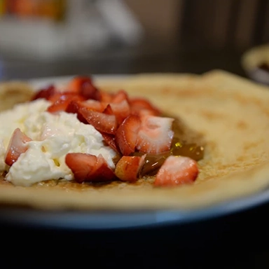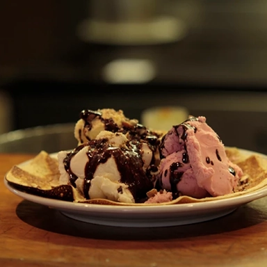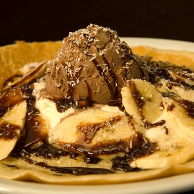 Panqueques dulces y variedad de Helados.